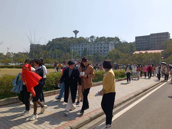 为庆祝第112个“三八”国际劳动妇女节,丰富女教职工业余文化生活,3月8日中午,我院分工会组织女教职工参加了校总工会举办的美丽校园健步走活动,数统学院领导罗四清书记、吴爱龙院长等共同参与活动。