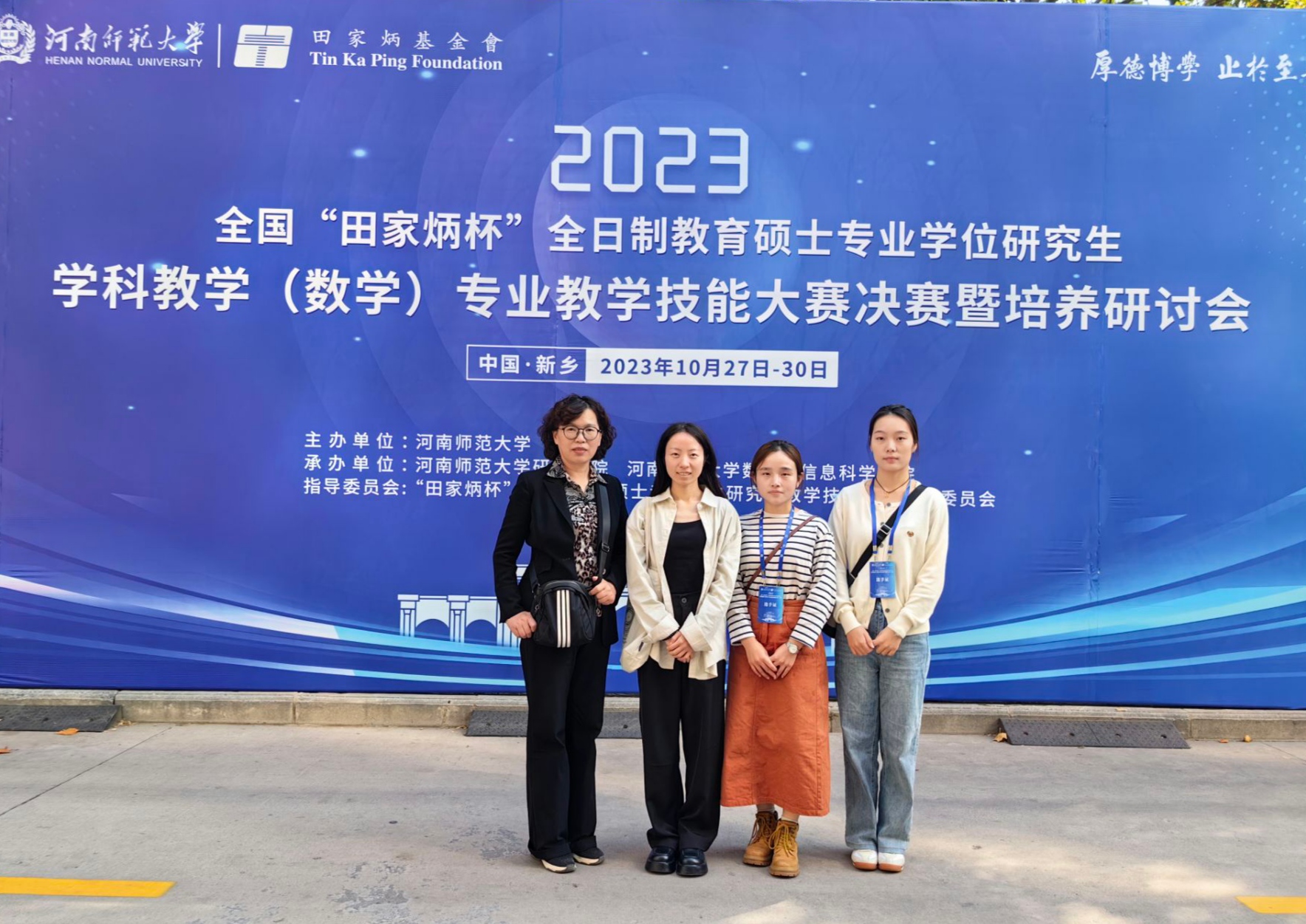 2023年10月29日,由全国教育专业学位研究生指导委员会主办、河南师范大学承办的全国“田家炳杯”全日制教育硕士学科教学(数学)专业教学技能大赛决赛圆满落下帷幕。伟德(国际)唯一官方2022级学科教学(数学)研究生崔云鸽(指导老师:郑绿洲)、乐玉鹏(指导老师:陈引兰)、方凯月(指导老师:严慧)荣获三等奖。