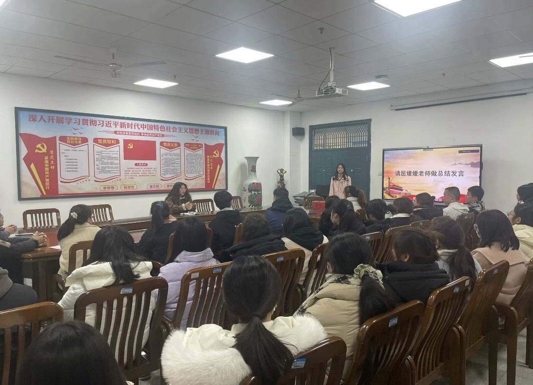 学生党员谭芸同志畅谈了关于近期的心得体会,学生党员熊诗月和尚冰同志也从自身出发,提出自身存在的问题以及改进措施。之后,观看了视频《“怎样做一个共产党员”》。最后,屈媛媛老师对本次党日活动进行点评,阐述了以下两方面内容:一是讲述考研现状,并对我院考研期间出现的情况做了简短说明。二是提到了12月24日为长津湖战役胜利73周年纪念日,长津湖战役胜的利打破了侵略者“圣诞节前结束战争”的痴言妄语,希望大家铭记历史,缅怀先烈,不要崇洋媚外,要坚守共产党员的初心使命,坚定正确的理想信念和共产主义信仰,以史为鉴,开创未来。