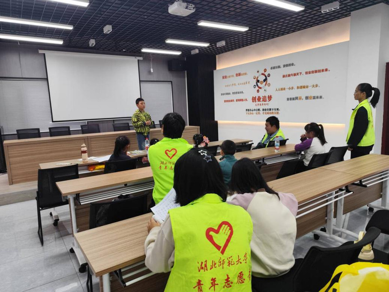 为弘扬“奉献、友爱、互助、进步”的志愿服务精神,助力社区儿童健康成长,10月25日,bv1946伟德国际青年志愿者服务大队前往黄石港区万达社区党群服务中心,组织开展以课业辅导与趣味互动为主题的周末学堂活动,为社区儿童提供暖心陪伴与学习支持。