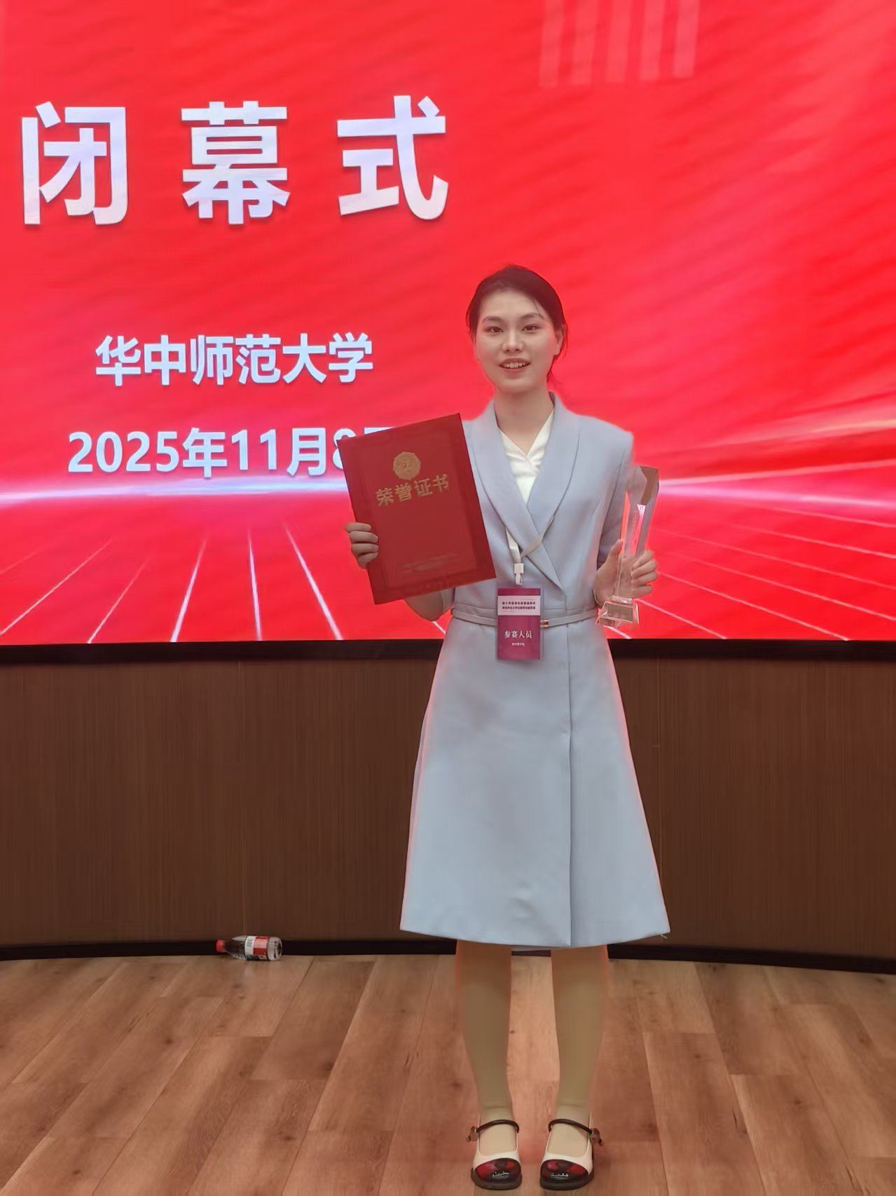 自备战以来,赛事由我院严慧老师全程深耕指导,围绕教学设计的逻辑架构、课件制作的实用性与创新性、教师语言的严谨连贯、教态仪表的自然得体等核心维度,开展多轮精细化打磨。指导过程中,严慧老师多次带领夏颍慧同学在微格教室开展模拟试讲,逐字逐句雕琢教学语言,精准查摆课堂问题,给出针对性优化方案。师生同心协力、精益求精,最终在激烈角逐中脱颖而出,斩获殊荣!