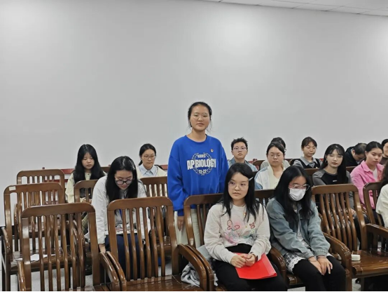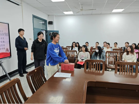学生党员王瑶同志结合党纪学习谈到最近班级奖学金评选,正是需以党纪要求的公平公正为准则,严格遵循章程、不徇私情,让每一份荣誉都实至名归。