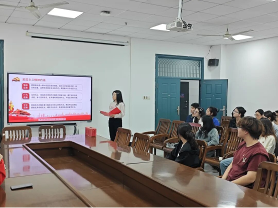 bv1946伟德国际学生党支部于2025年10月16日下午在信息大楼10604开展了“弘扬爱国精神 凝聚奋进力量”主题党日活动,参会人员有bv1946伟德国际学生第一党支部书记杨宇森老师、bv1946伟德国际学生第二党支部书记朱丽老师、数统学院全体学生党员。本次党日活动由刘晓锋同志主持。