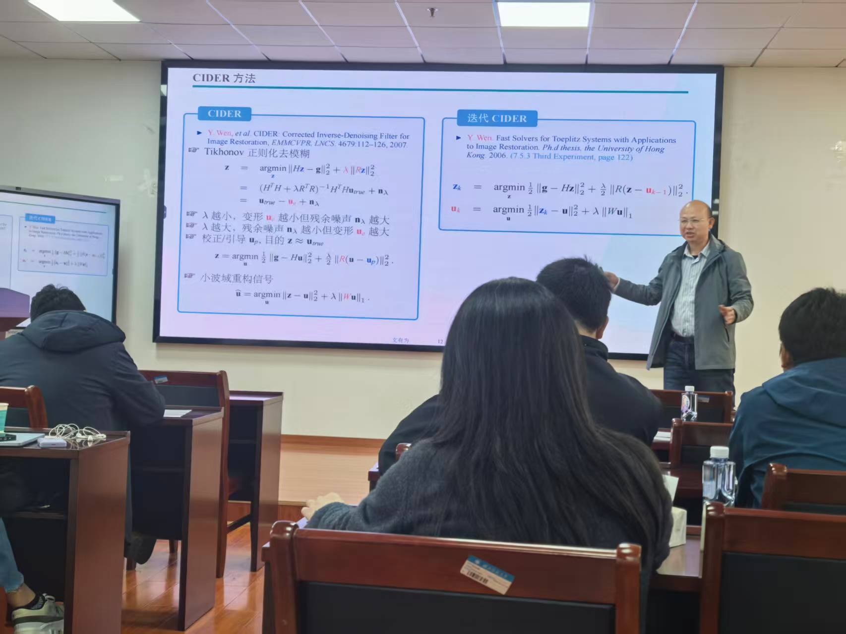会后,各位专家围绕“图像处理领域模型、理论与算法的前沿问题及发展趋势”展开专题研讨。整场研讨会节奏紧凑、内容翔实,既有深刻的理论探索,也有面向实际应用的算法创新。报告嘉宾准备充分,讲解深入浅出;与会学者和学生认真聆听,并在问答环节就报告内容进行了热烈而深入的探讨与交流,现场学术氛围浓厚。