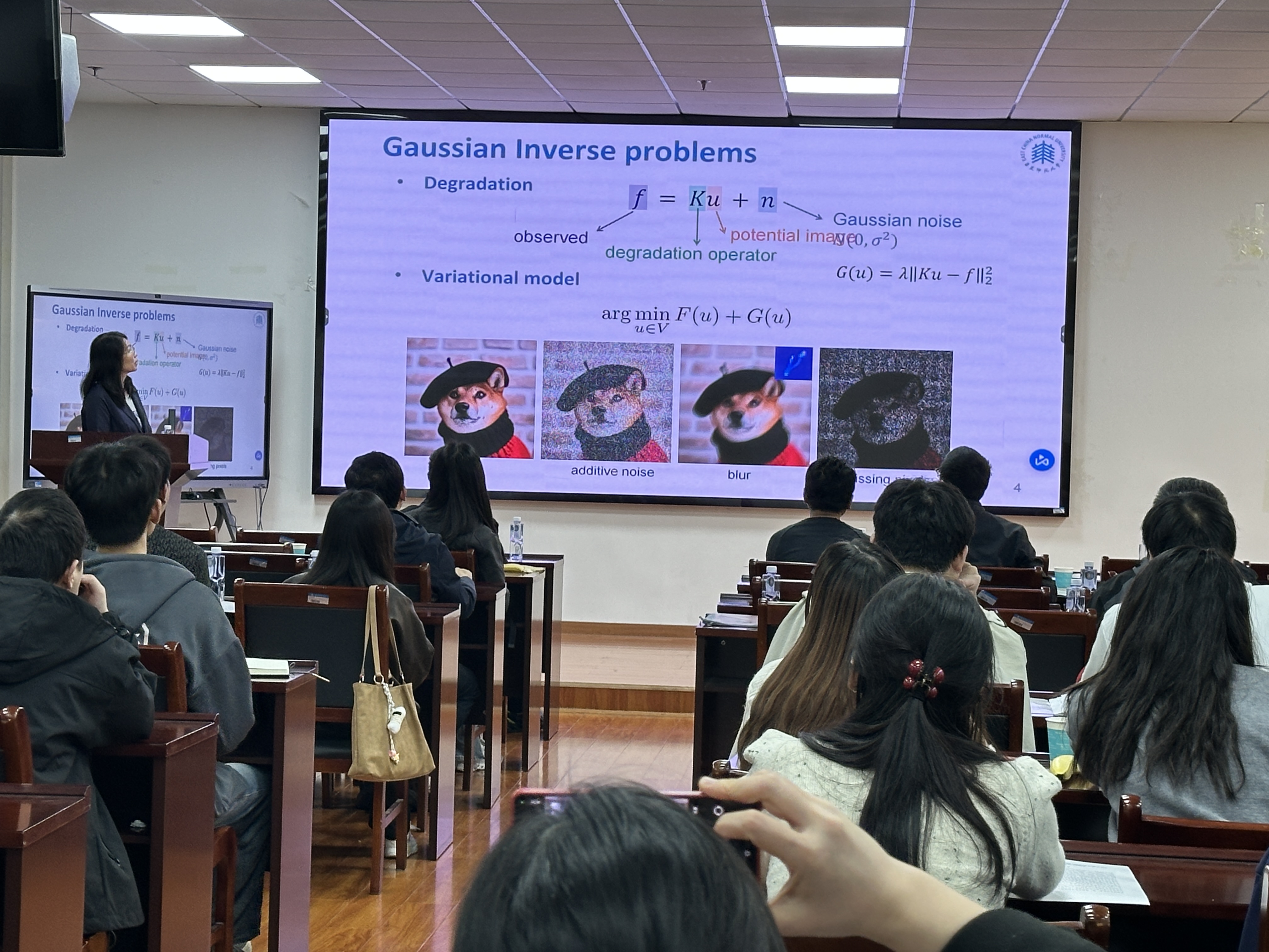 湖南师范大学文有为教授以《图像反问题中正则化参数选取理论及方法》为题作学术报告。图像反问题作为从观测数据恢复真实图像信息的核心技术,在计算机视觉、智能制造及医学成像等前沿领域有着广泛的应用价值。自适应正则化变分法是求解图像反问题的关键手段,其性能优劣直接取决于求解过程中正则化参数的自适应调整能力:参数选取不当易导致图像过度平滑或噪声残留。本报告将聚焦图像反问题的自适应正则化方法,阐述正则化参数的自适应选取逻辑。