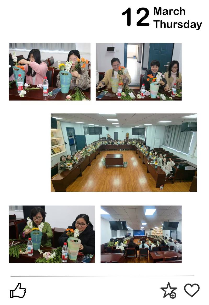 为庆祝“三八”国际妇女节,312日下午,bv1946伟德国际分工会于10603会议室举办了“花漾女神节芬芳绽芳华”插花体验活动。全体女教职工欢聚一堂,共同度过了一个温馨且难忘的节日。