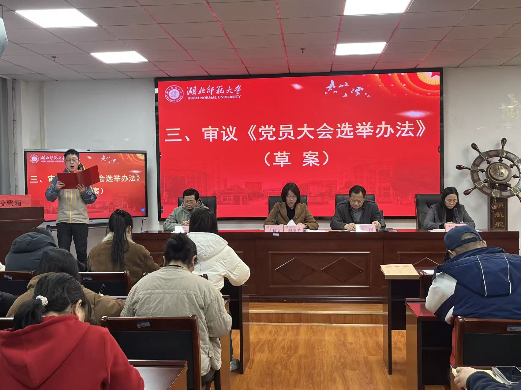 大会在庄严的国歌声中拉开帷幕。刘琼芳同志首先报告了大会到会情况:学院应到党员112人,其中有选举权的党员87人;实到党员103人,其中有选举权的党员78人,参会党员人数符合规定,会议有效。